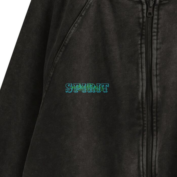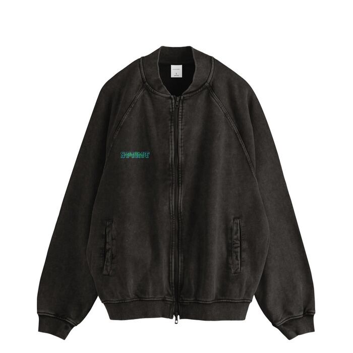 ウォッシュ加工仕立てのスウェットブルゾン。